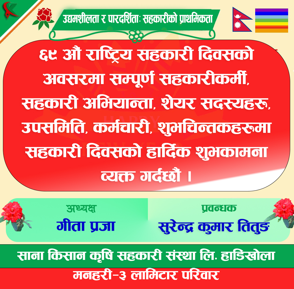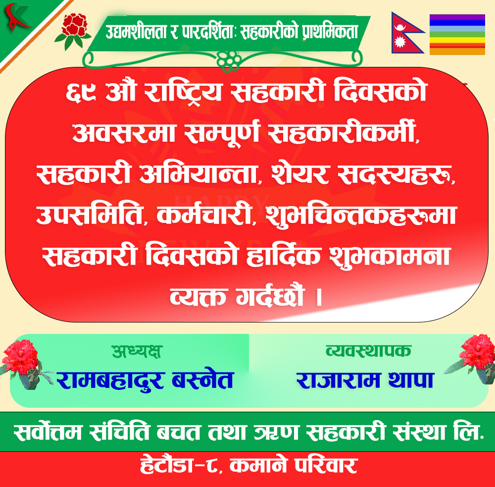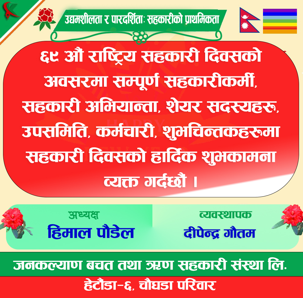 सहकारी दिवस भव्यसाथ मनाउनुपर्छ : देवकोटा