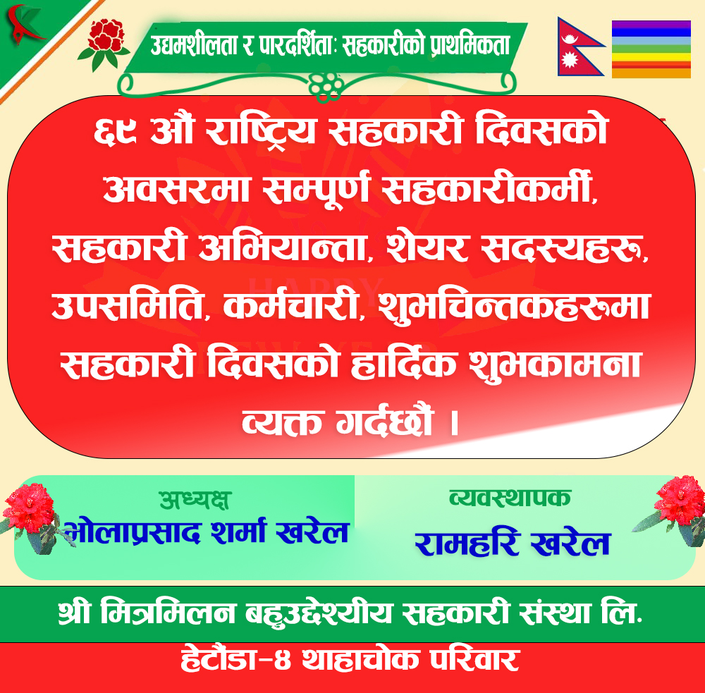 हेटौंडामा मनाइयो सहकारी दिवस, महिला मिलन साकोस प्रथम