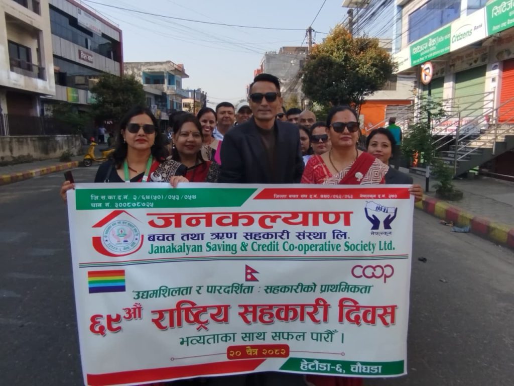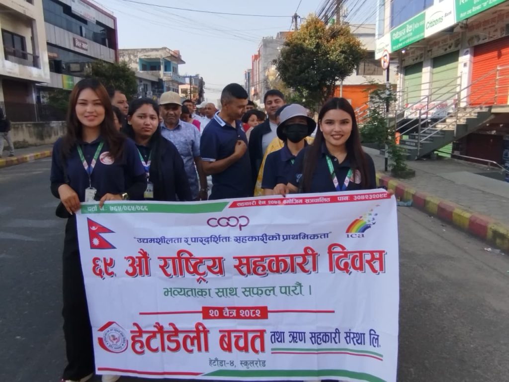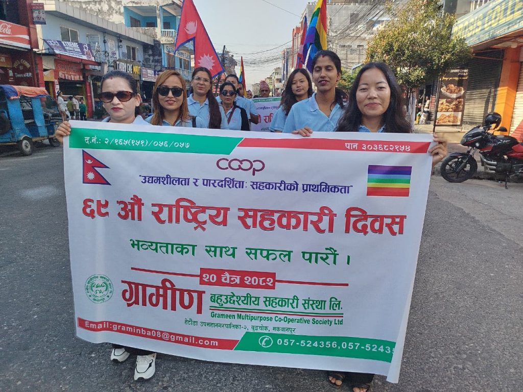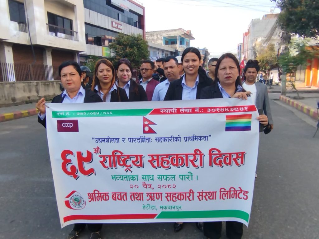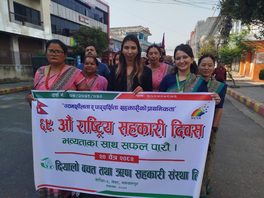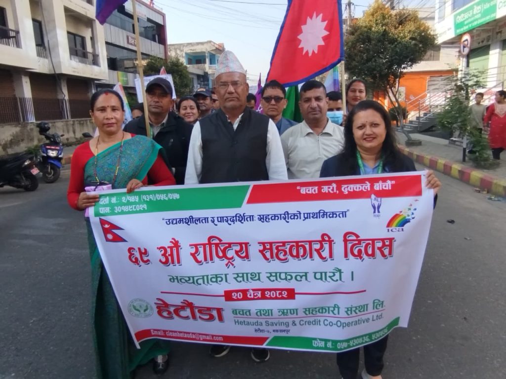 हेटौंडा \ ६९ औं राष्ट्रिय सहकारी दिवस-२०८२ हेटौंडामा भव्यताका साथ मनाइएको छ । उद्यमशीलता र पारदर्शिताः सहकारीको प्राथमिकता भन्ने मूल नाराका साथ प्रभातफेरी गरि सहकारी दिवस मनाइएको हो । दिवस मूल समारोह समितिका संयोजक नारायण प्रसाद देवकोटाको सभाध्यक्षता तथा बागमती प्रदेश सरकारका मुख्यमन्त्री ईन्द्रबहादुर बानियाँको प्रमुख आतिथ्यतामा दिवस मनाइएको हो ।