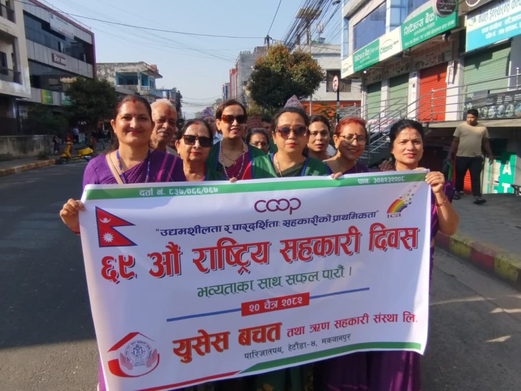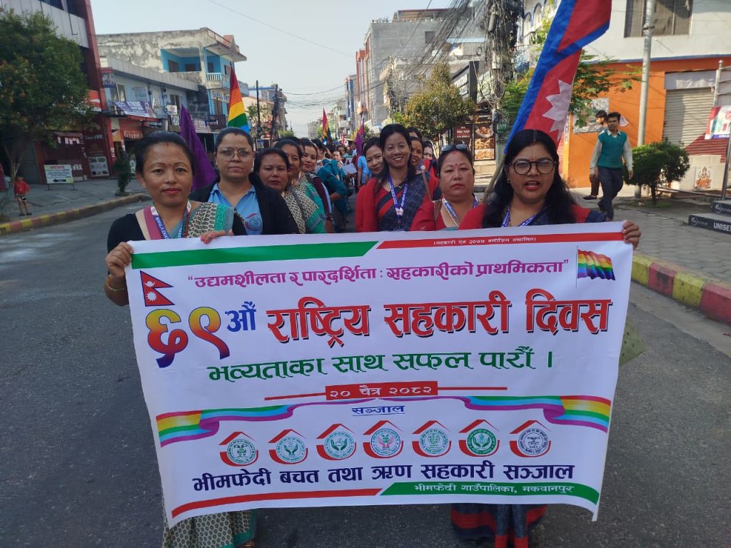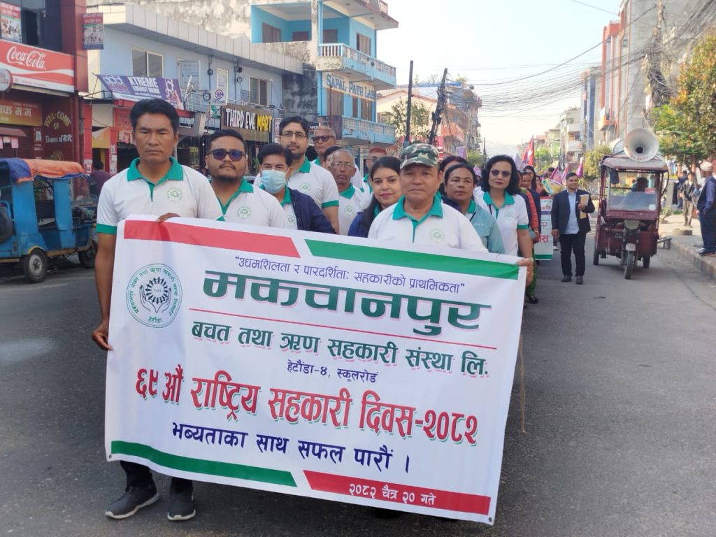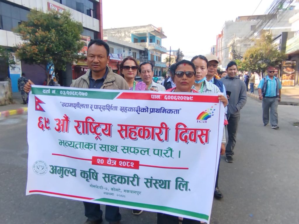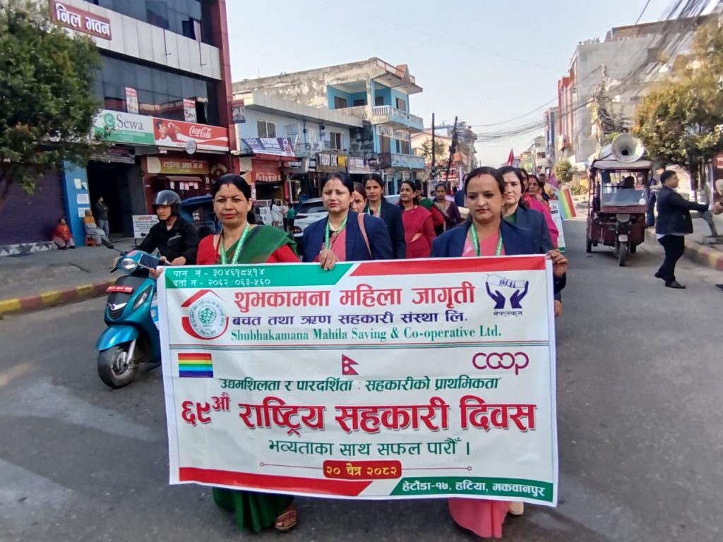 हेटौंडा \ ६९ औं राष्ट्रिय सहकारी दिवस-२०८२ हेटौंडामा भव्यताका साथ मनाइएको छ । उद्यमशीलता र पारदर्शिताः सहकारीको प्राथमिकता भन्ने मूल नाराका साथ प्रभातफेरी गरि सहकारी दिवस मनाइएको हो । दिवस मूल समारोह समितिका संयोजक नारायण प्रसाद देवकोटाको सभाध्यक्षता तथा बागमती प्रदेश सरकारका मुख्यमन्त्री ईन्द्रबहादुर बानियाँको प्रमुख आतिथ्यतामा दिवस मनाइएको हो ।