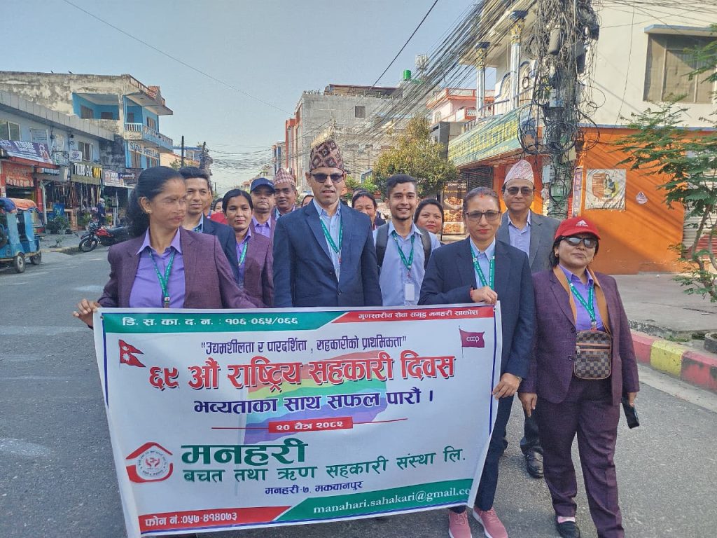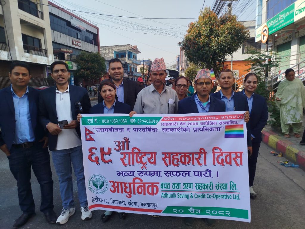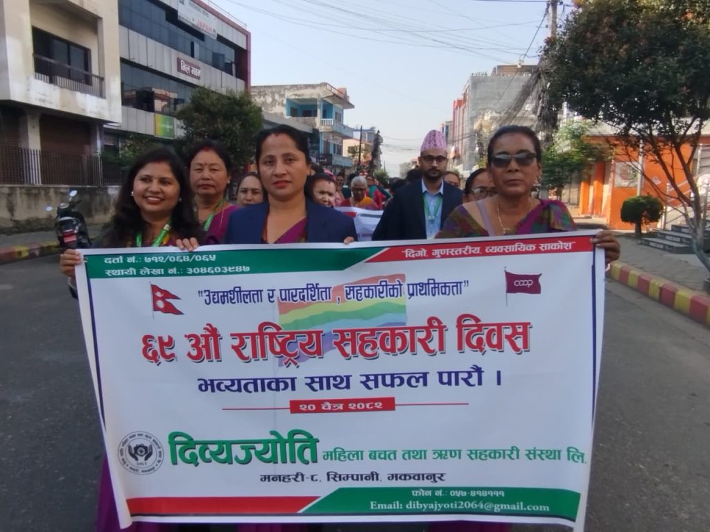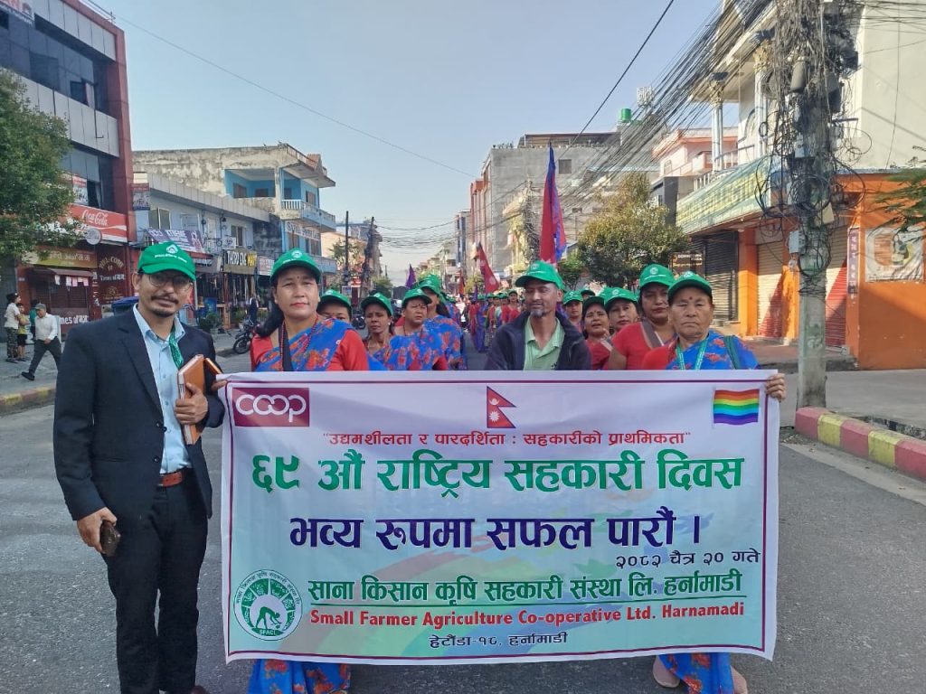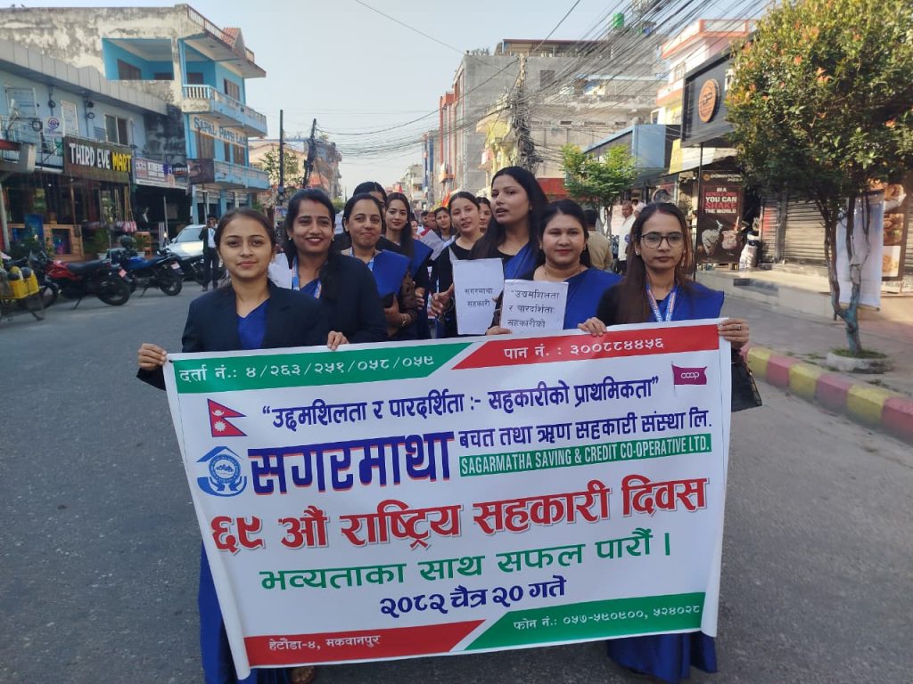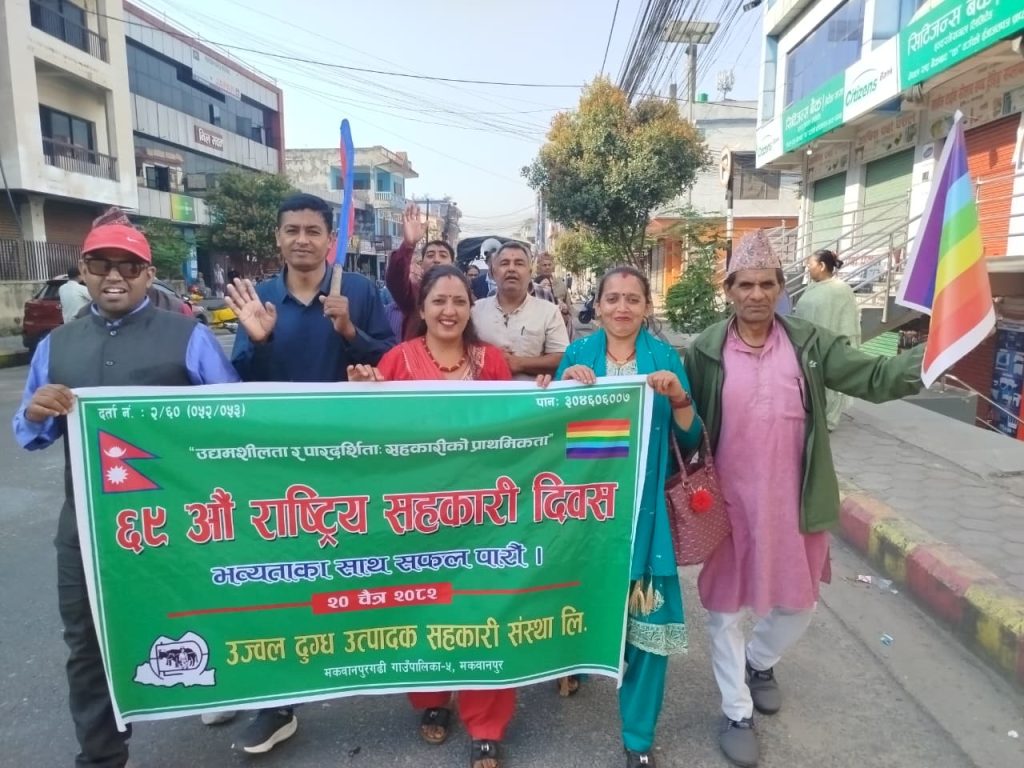 हेटौंडा \ ६९ औं राष्ट्रिय सहकारी दिवस-२०८२ हेटौंडामा भव्यताका साथ मनाइएको छ । उद्यमशीलता र पारदर्शिताः सहकारीको प्राथमिकता भन्ने मूल नाराका साथ प्रभातफेरी गरि सहकारी दिवस मनाइएको हो । दिवस मूल समारोह समितिका संयोजक नारायण प्रसाद देवकोटाको सभाध्यक्षता तथा बागमती प्रदेश सरकारका मुख्यमन्त्री ईन्द्रबहादुर बानियाँको प्रमुख आतिथ्यतामा दिवस मनाइएको हो ।