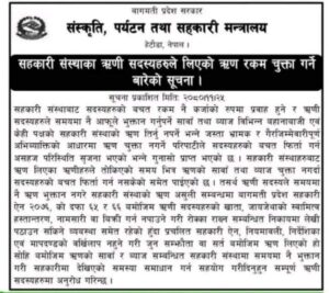 हेटौंडा \ बागमती प्रदेश सरकारको संस्कृति, पर्यटन तथा सहकारी मन्त्रालयले सहकारी संस्थाका ऋणी सदस्यहरूलाई...
